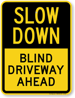 They are usually diamond-shaped yellow warning signs, consistent with other road hazard warnings. For private residential areas or small estates, some users prefer custom signs that combine a speed limit with a "Hidden Drive" warning to reinforce safety.