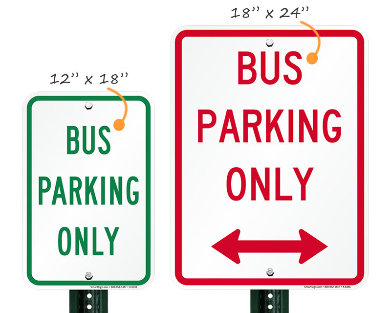 Bus Parking Signs keep other vehicles away from bus loading areas, drop-off and pick up zones to avoid traffic and delays. Signs clearly mark parking areas and parking spots reserved for buses.