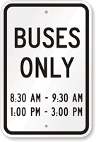 Bus Parking Signs keep other vehicles away from bus loading areas, drop-off and pick up zones to avoid traffic and delays. Signs clearly mark parking areas and parking spots reserved for buses.