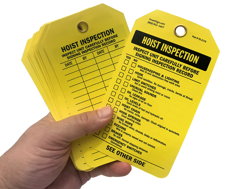 A Frequent Inspection tag is used to log the daily or weekly operational checks. A Periodic Inspection tag is used by a qualified technician to log the more detailed monthly or annual inspection of the crane. This information is key to the overall maintenance record.