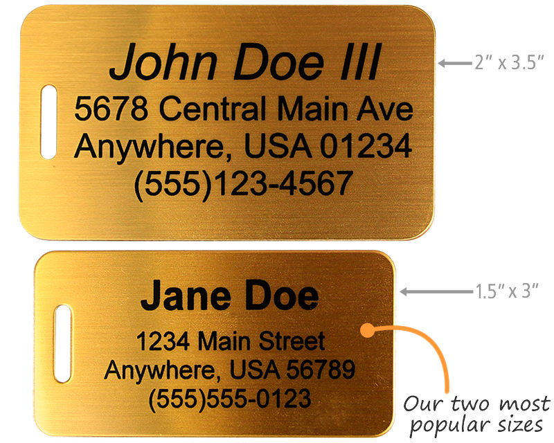 Size: 1.5" x 3" Material type: Sublimated Bugle Heavy Brass Luggage Tag