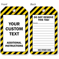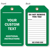 You can print anything you need, including your company logo, custom text, specific safety warnings, or sequential numbering. They can be printed in full color on one or both sides of the tag. You can also print on tyvek tags.