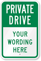 You may also opt for our private road shield sign that is available in aluminum as well as laminated plastic label material options, and do a better job of grabbing attention than regular rectangular signs. Private Drive Stencils are a great way to mark your road as well.