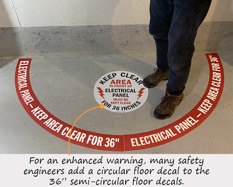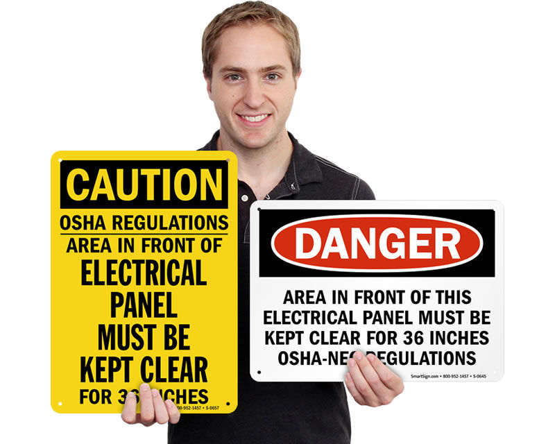 OSHA 1910.303(g) requires a 36" deep by 30" wide clear zone. You can mark this area with electrical panel clearance signs to ensure compliance.