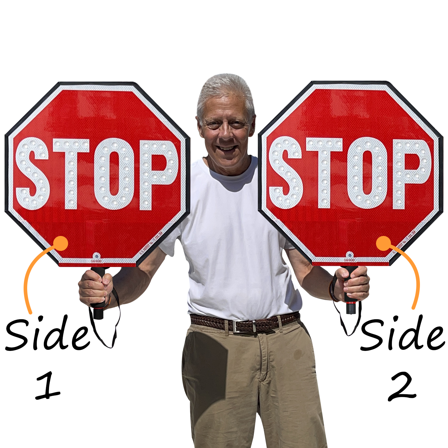 - In contrast to other LED competitors, our paddles feature LED lights inside of the lettering. STOP and SLOW become easy to read – even from a great distance.