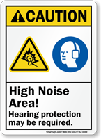 What'd you say? Exposure to loud noises, such as blasting, heavy machinery, explosions, fireworks, or jet engines can cause irreversible hearing loss. Use hearing protection signs to ensure the safety of your employees.