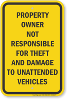 Better safe than sorry. Not Responsible for Theft, Lock Your Car Signs remind drivers to lock their cars and keep valuables out of sight. Protect yourself from liability for lost, stolen or damaged items by posting necessary warnings.