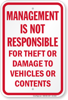 Better safe than sorry. Not Responsible for Theft, Lock Your Car Signs remind drivers to lock their cars and keep valuables out of sight. Protect yourself from liability for lost, stolen or damaged items by posting necessary warnings.