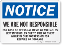 About our Not Responsible for Theft, Lock Your Car Signs