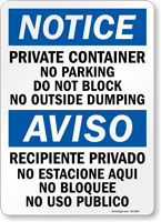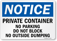 No Parking Dumpster Area Signs