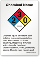 • • Avoid the headache of handwriting your labels. Preprint the chemical's name, ratings and, optionally, the CAS number.