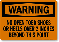 Use a No Open Toed Shoe sign or Closed Toe Shoes Required Signs at entrances and visitor registration areas. Signs provide a kindly reminder. Make it easier for everyone to enforce your open toed shoes rules.