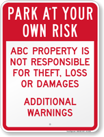 About our Park At Your Own Risk Signs