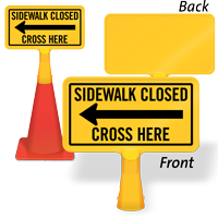 Size: 8" x 15" Material type: Reflective “No-Tip” Traffic Cone Sign - Two Sides Printed