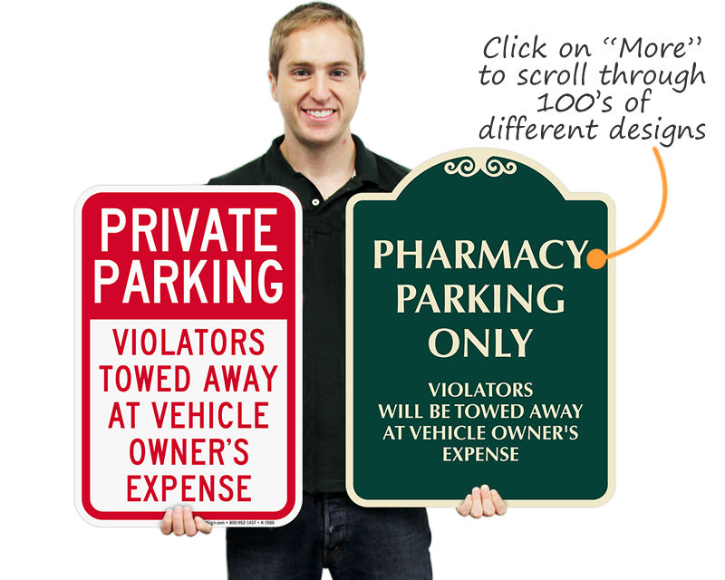 Scroll through 100’s of different Violators will be Towed Signs.