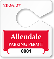 Mini parking hang tags are small, discreet permits designed to hang from a rearview mirror. They are less obtrusive than standard-sized tags, making them a popular choice for daily driver use while still identifying authorized vehicles. Explore our full collection of mini parking tags.