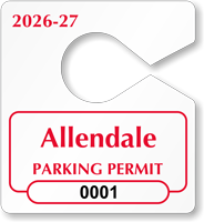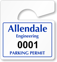 • • Miniature parking permit hang tags are ideal for maximum visibility and minimum obstruction.