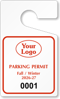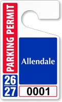 A standard-size parking hang tag is the most common and popular permit size. It offers a perfect balance between being large enough for security to see clearly, yet small enough that it doesn't overly obstruct the driver's view. See our full collection of standard parking tags.