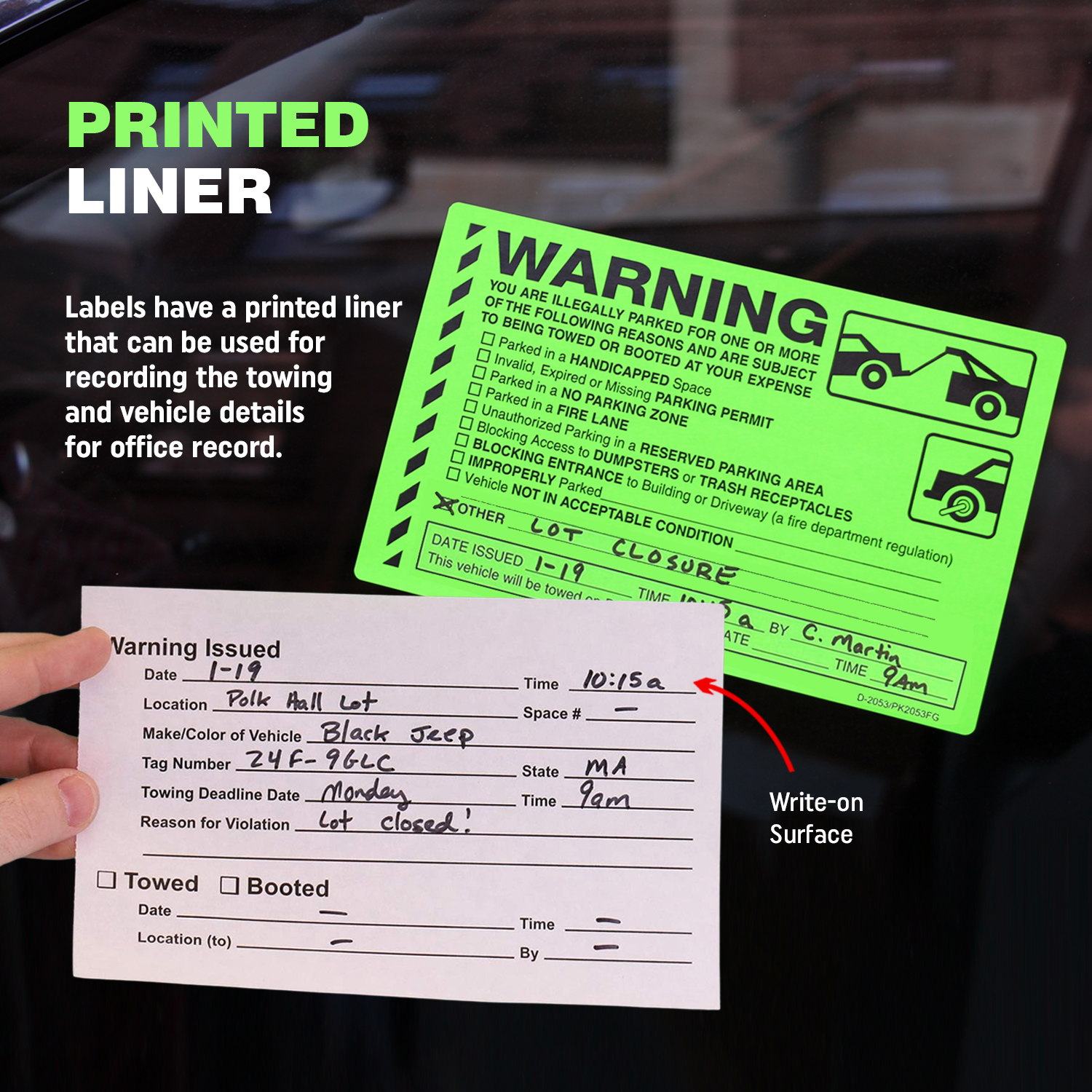 Size: 5" x 8" Material Type: Fluorescent Paper Labels Verified PurchaseWarning illegally parked! Exactly as described