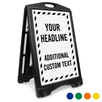 • • Both have “tilt-to-engage wheels” that make these signs easy to move.