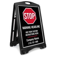 • • Both have “tilt-to-engage wheels” that make these signs easy to move.