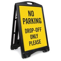 • • Both have “tilt-to-engage wheels” that make these signs easy to move.