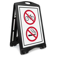 • • Both have “tilt-to-engage wheels” that make these signs easy to move.