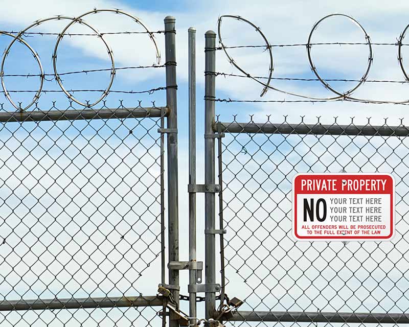 Custom prohibition signs are great for showing off a particular message. Warn people of specific risks, discourage poor behavior, or just guide visitors around your property.