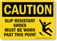Put your flip-flops away. OSHA requires all employees who risk foot or leg injuries to wear proper footwear. Install Safety Shoes Signs to remind employees to wear protective safety shoes at work.