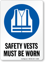 • • Safety vest signs provide a friendly reminder for a critical aspect for worker safety.