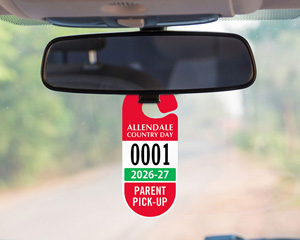 - • Choose from multiple color options to identify students, faculty, and parent pickup vehicles.