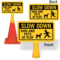 We certainly do. You may choose from our heavy-duty reflective cone sleeves and double-sided ConeBoss signs that fit on standard traffic cones and may be moved as desired. Alternatively, you may order a sign base for your aluminum slow-kids-at-play sign and keep a portable sign handy at all times!.