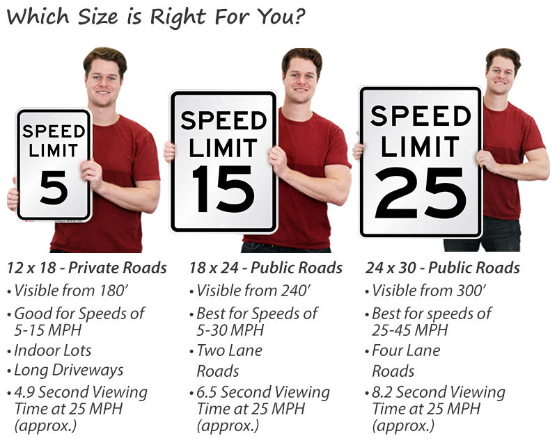 Prevent accidents with our speed limit signs, the same we supply to government customers, which meet DOT and MUTCD standards. Messages start from as low as 5 mph.