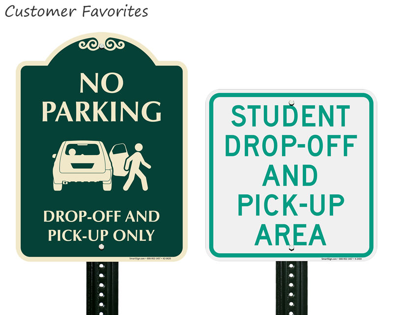 You can browse our full collection of student drop-off signs including student loading zones, no parking during drop-off hours, and pick-up lane signs in aluminum and reflective materials, all with same-day shipping for safe, high-visibility outdoor installation at any school.