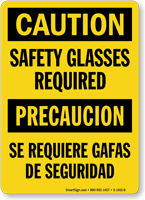 Safety glasses signs are required by OSHA at the entrances to all work areas where employees are exposed to potential eye hazards. This includes, but is not limited to, areas with flying particles, molten metal, liquid chemicals, acids or caustic liquids, chemical gases or vapors, or potentially injurious light radiation.